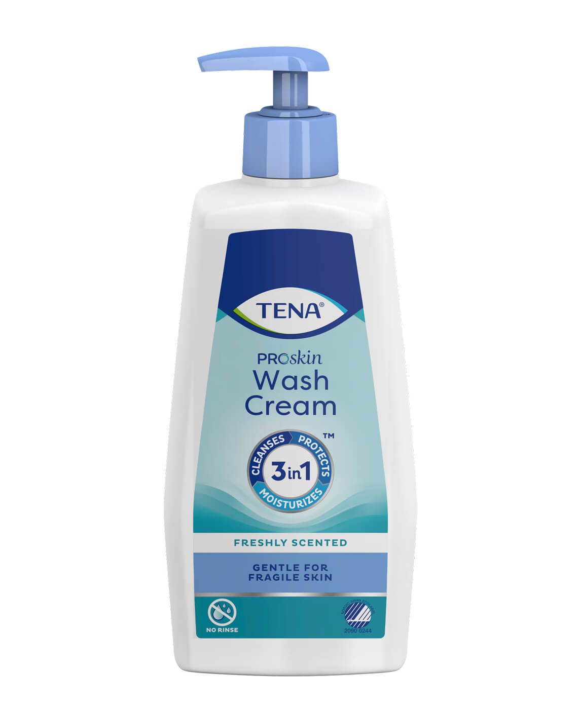 Tena Washcream is een zacht alternatief voor reinigen met water en zeep. Het beschermt en hydrateert de kwetsbare huid. Door de handige formule is naspoelen met water niet nodig. TENA ProSkin Wash Cream is bijvoorbeeld geschikt om te gebruiken bij het verschonen van incontinentieproducten, maar ook bij een volledige reiniging van het lichaam. De verzorgende crème is dermatologisch getest, helpt bij het behoud van de natuurlijke pH-waarde van de huid en heeft een frisse geur om ongewenste geurtjes tegen te gaan.